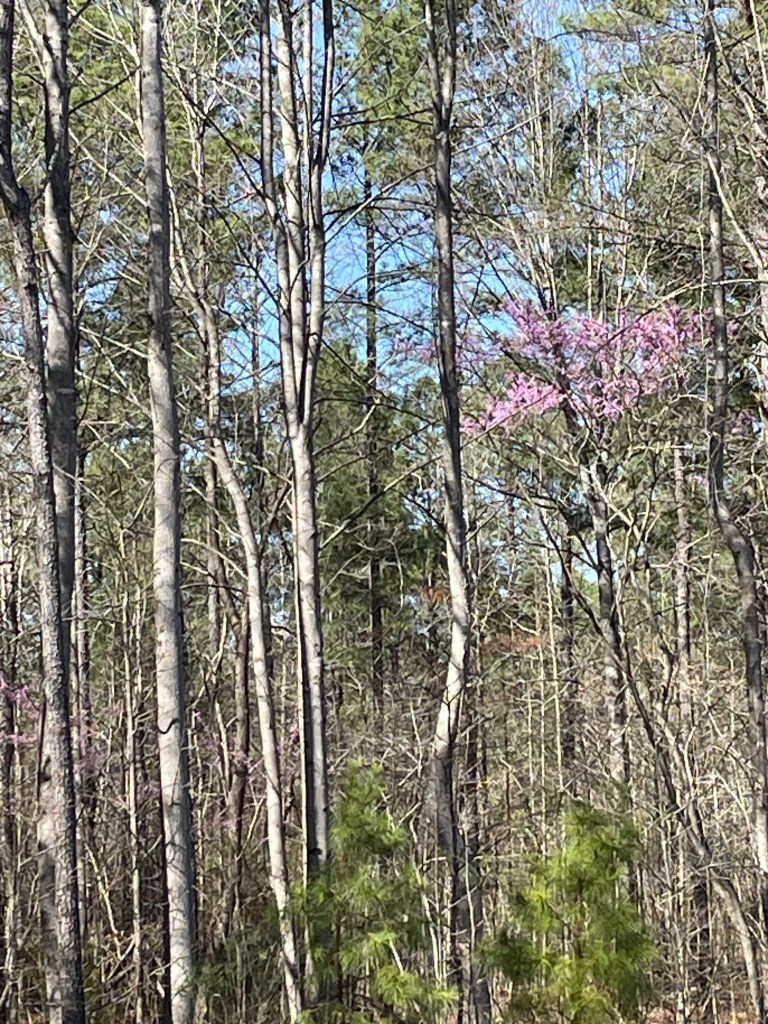 Spring is my absolute favorite season, especially here in my new home state of North Carolina. I never saw wild deciduous trees bloom in my native southern California. I had beautiful, flowering jacaranda, crepe myrtle, and Chinese orchid trees in my California backyard, cultivars imported centuries ago from exotic locales, but no native blooming trees. I don’t know the names of them all yet, but right now, the forests in central North Carolina are exploding with blossoms of pink, violet, and white.